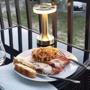 Bring cozy, elegant lighting anywhere with this cordless LED metal lamp