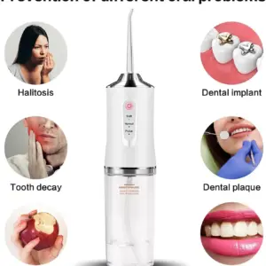 This powerful water flosser blasts away food debris, plaque, and bacteria from every hidden spot in your mouth —
