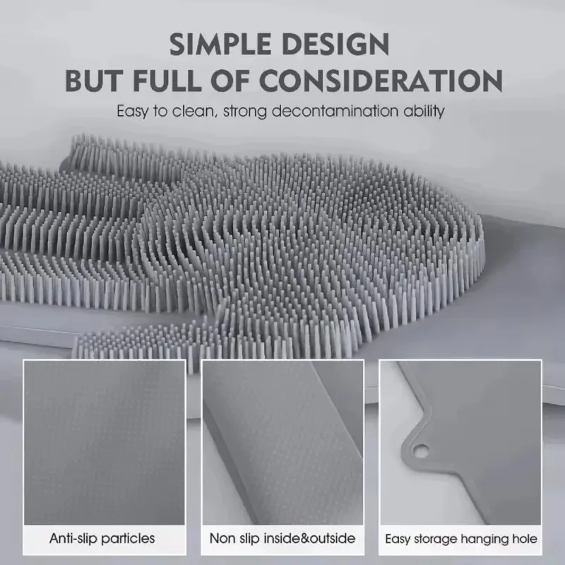 شعيرات سيليكون في الكف والصوابع → تفرك كويس من أول مرة