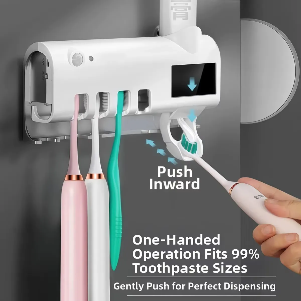 Mount it on the wall, insert your toothbrush and toothpaste, and let it sterilize automatically.