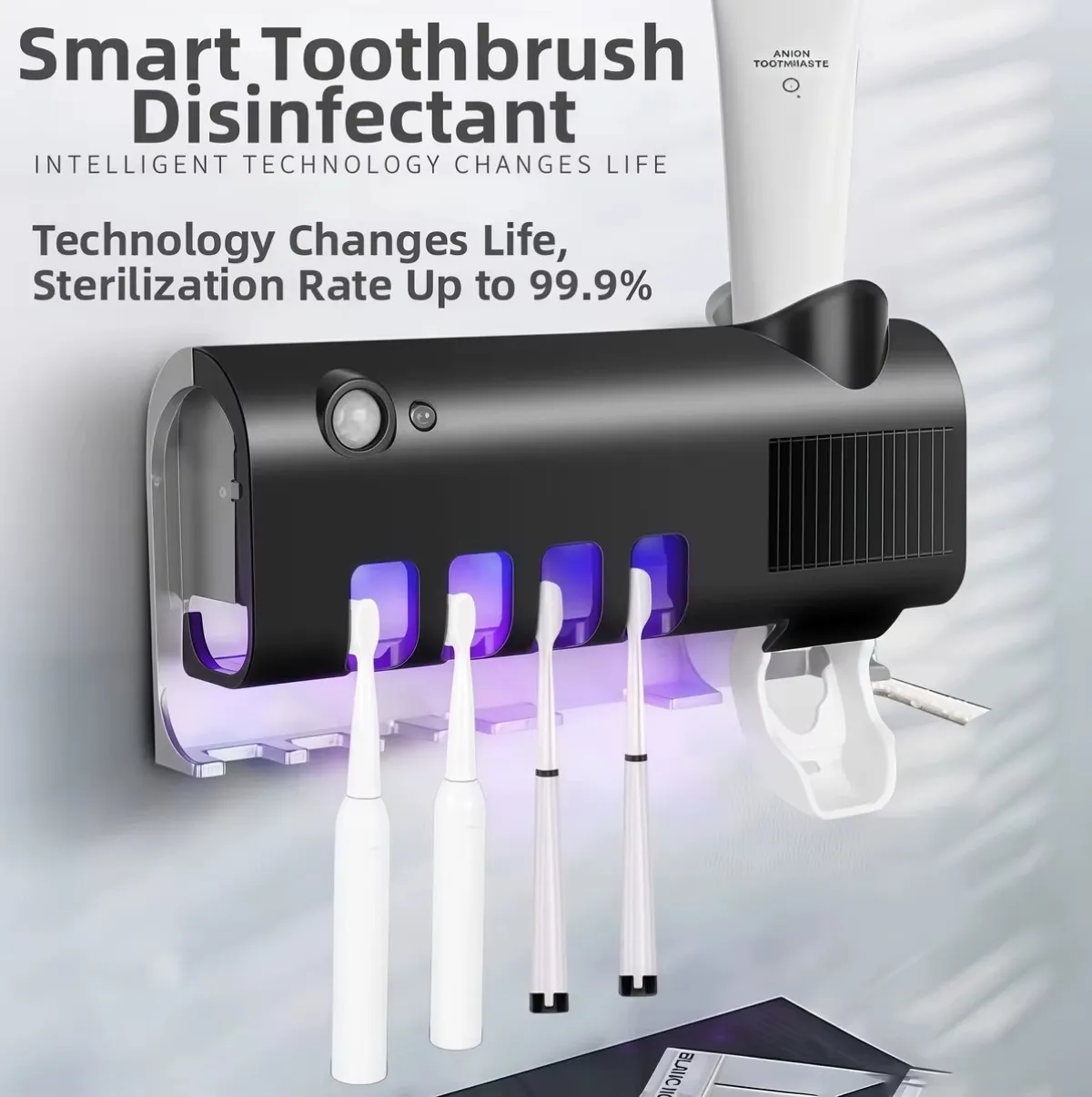 The Smart UV Toothbrush Holder & Dispenser keeps your toothbrush clean, safe, and ready to use every time.