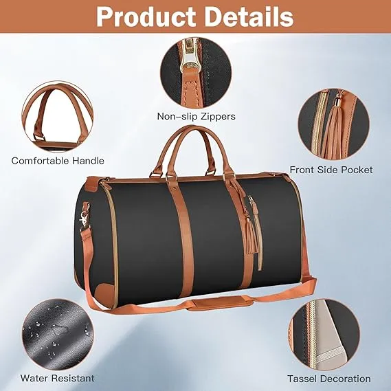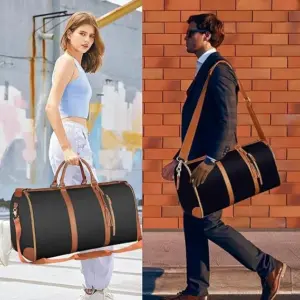 ✔ Converts from duffel bag to garment hanger in seconds