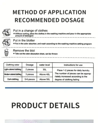 - الاستخدام: منع تداخل الألوان أثناء الغسيل.